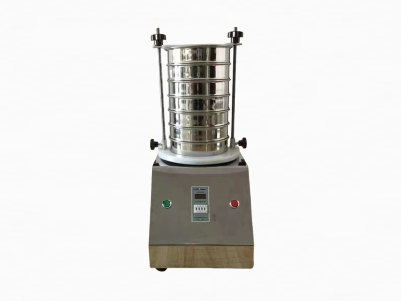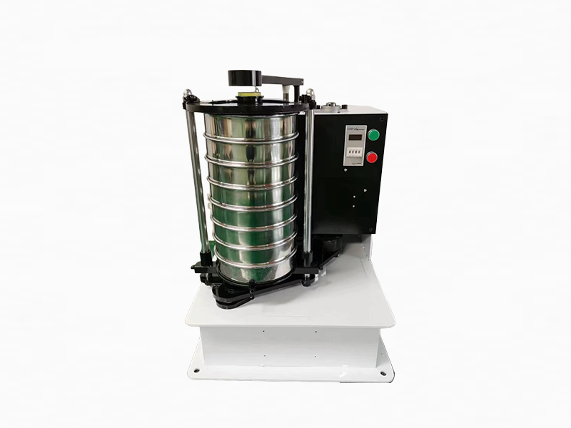 檢驗篩機是以振動電機作為振動源的,振動電機振動帶動篩機底座振動,再通過底座傳導到安放在底座上的標準篩上,使小于標準篩篩面網孔的物料顆粒篩分進下層篩里,如此層層篩選,使每層篩內只留相同粒度的物料。達到不同粒度的分離并確定此物料的粒度組成。使標準篩中的物料能有效地篩分、分級、過濾的目的。