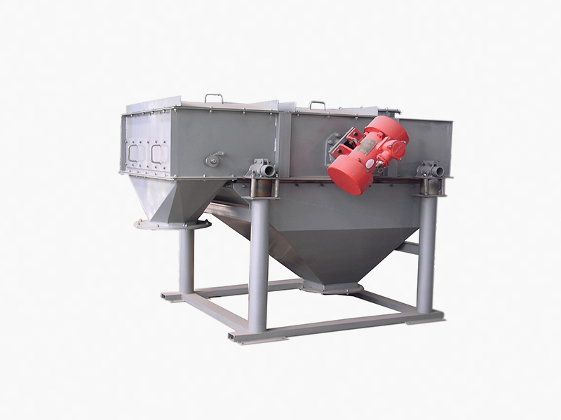ZZS型系列直線振動篩是雙振動電機驅動。當兩臺振動電機做同步、反向旋轉時,其偏心塊所產生的激振力在平行于電機軸線的方向相互抵消,在垂直于電機軸的方向疊為一合力,因此篩機的運動軌跡為一直線。兩電機軸相對篩面有一傾角,在激振力和物料自重力的合力作用下,物料在篩面上被拋起跳躍式向前作直線運動,加之合理的匹配篩網,從而達到對物料進行篩選和分級的目的。
